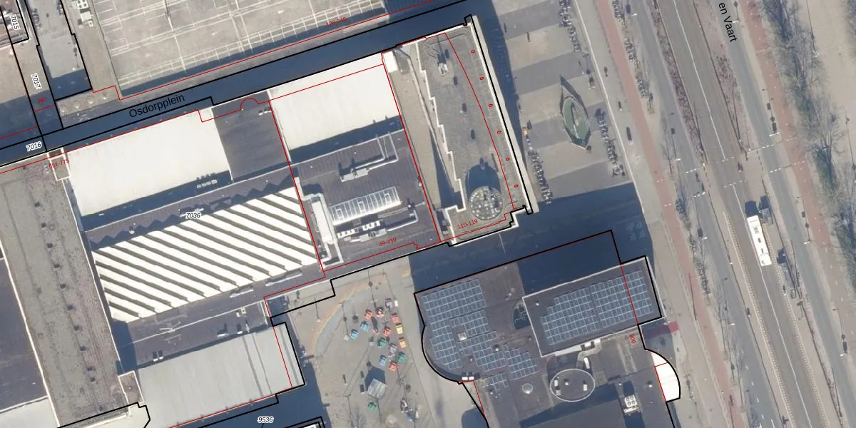 Het perceel waarop Osdorpplein 104 staat heeft een oppervlakte van 8664 m². Dit is een zeer groot perceel. De perceeloppervlakte wordt geregistreerd door het Kadaster. Gedetailleerde informatie over de maten van dit perceel kunt u vinden in het rapport Kadastrale kaart met maatvoering van Osdorpplein 104.