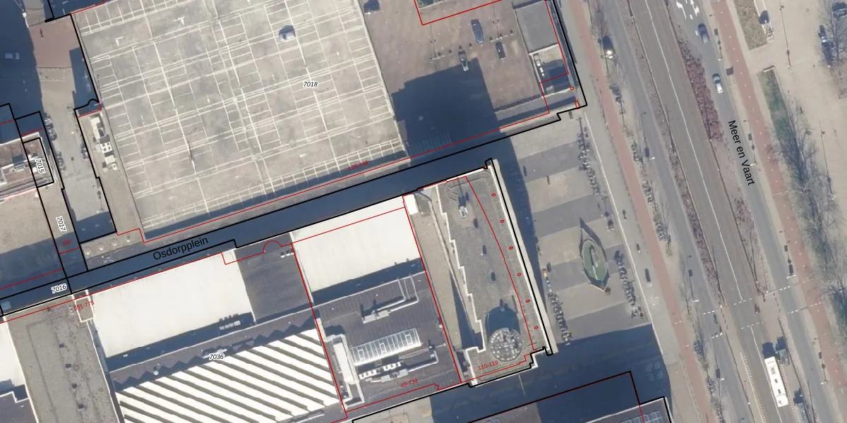 Het perceel waarop Osdorpplein 119 staat heeft een oppervlakte van 8664 m². Dit is een zeer groot perceel. De perceeloppervlakte wordt geregistreerd door het Kadaster. Gedetailleerde informatie over de maten van dit perceel kunt u vinden in het rapport Kadastrale kaart met maatvoering van Osdorpplein 119.