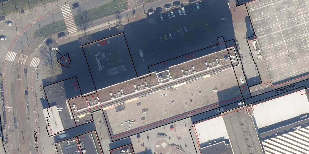 Het perceel waarop Osdorpplein 265 staat heeft een oppervlakte van 4513 m². Dit is een zeer groot perceel. De perceeloppervlakte wordt geregistreerd door het Kadaster. Gedetailleerde informatie over de maten van dit perceel kunt u vinden in het rapport Kadastrale kaart met maatvoering van Osdorpplein 265.
