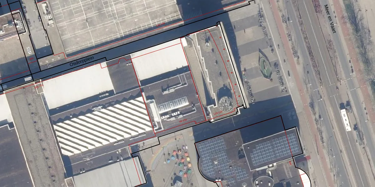 Het perceel waarop Osdorpplein 68 staat heeft een oppervlakte van 8664 m². Dit is een zeer groot perceel. De perceeloppervlakte wordt geregistreerd door het Kadaster. Gedetailleerde informatie over de maten van dit perceel kunt u vinden in het rapport Kadastrale kaart met maatvoering van Osdorpplein 68.