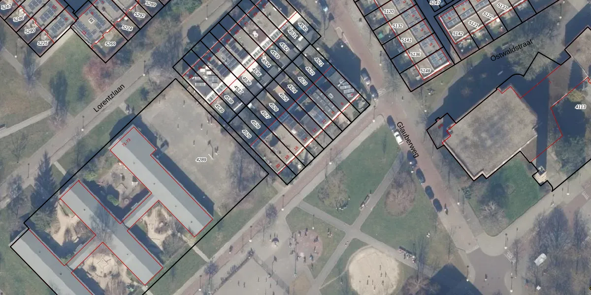 Ostwaldstraat 16 is gelegen op kadastraal perceel WTG02A4527. Deze kadastrale aanduiding is uniek en wordt gebruikt door het Kadaster om eigendomsrechten en andere zakelijke rechten vast te leggen. Het perceel maakt onderdeel uit van de kadastrale gemeente Watergraafsmeer.