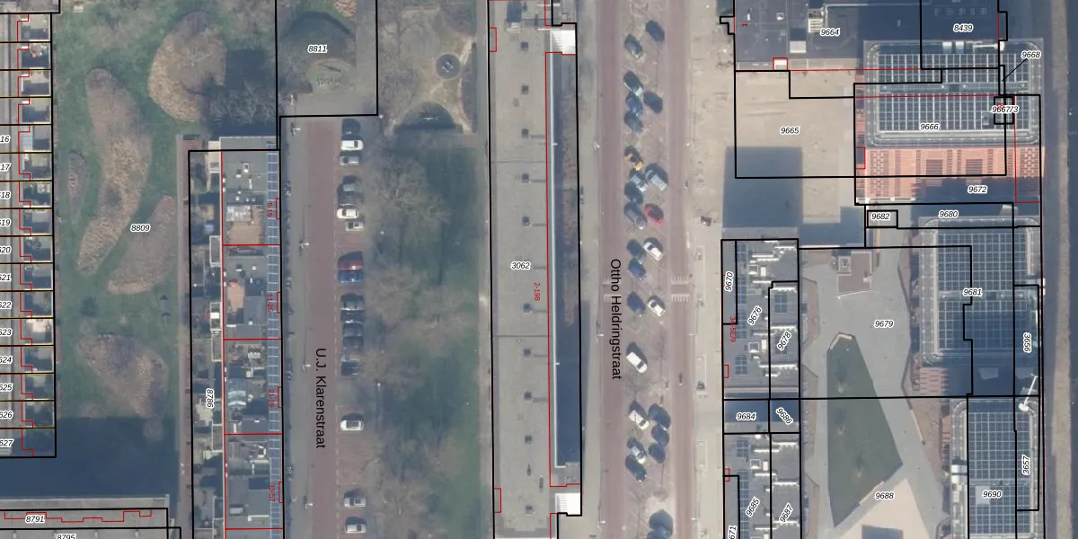 Ottho Heldringstraat 100 is gelegen op kadastraal perceel STN02E3062. Deze kadastrale aanduiding is uniek en wordt gebruikt door het Kadaster om eigendomsrechten en andere zakelijke rechten vast te leggen. Het perceel maakt onderdeel uit van de kadastrale gemeente Sloten Noord-Holland.