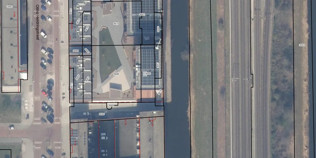 Ottho Heldringstraat 3-E-94 is gelegen op kadastraal perceel STN02E9674. Deze kadastrale aanduiding is uniek en wordt gebruikt door het Kadaster om eigendomsrechten en andere zakelijke rechten vast te leggen. Het perceel maakt onderdeel uit van de kadastrale gemeente Sloten Noord-Holland.