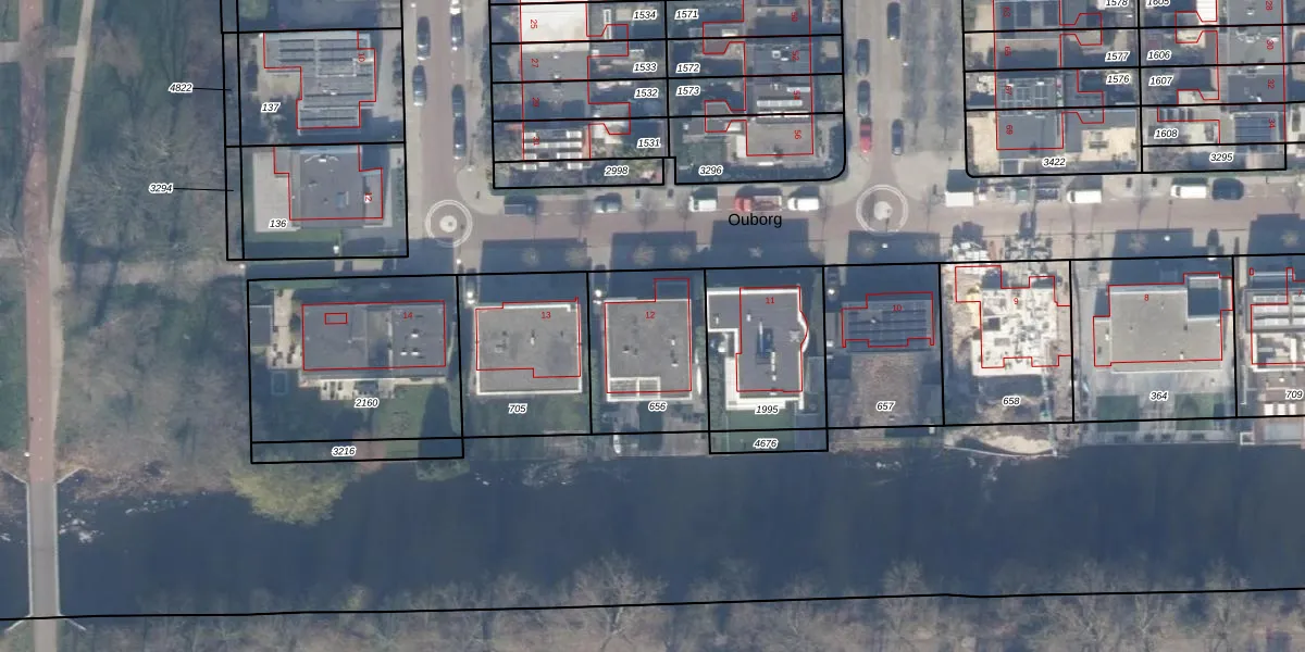 Het perceel waarop Ouborg 12 staat heeft een oppervlakte van 448 m². Dit is een groot perceel. De perceeloppervlakte wordt geregistreerd door het Kadaster. Gedetailleerde informatie over de maten van dit perceel kunt u vinden in het rapport Kadastrale kaart met maatvoering van Ouborg 12.