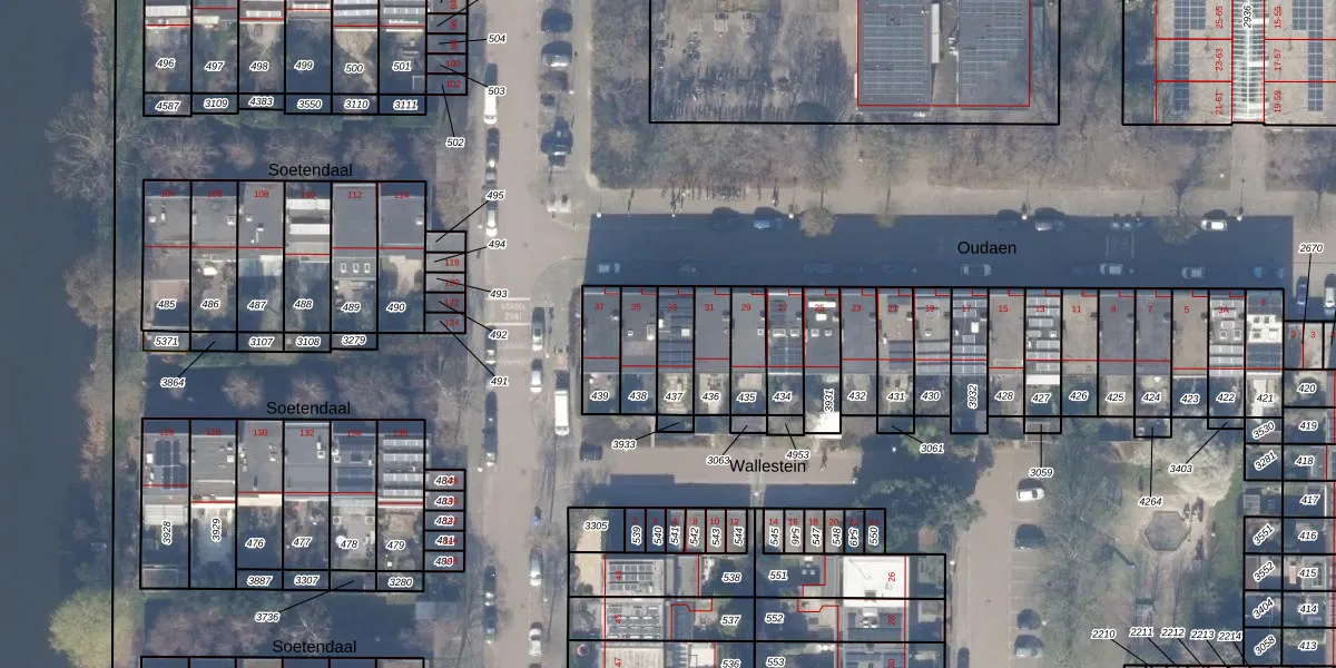 Het perceel waarop Oudaen 33 staat heeft een oppervlakte van 106 m². Dit is een middelgroot perceel. De perceeloppervlakte wordt geregistreerd door het Kadaster. Gedetailleerde informatie over de maten van dit perceel kunt u vinden in het rapport Kadastrale kaart met maatvoering van Oudaen 33.