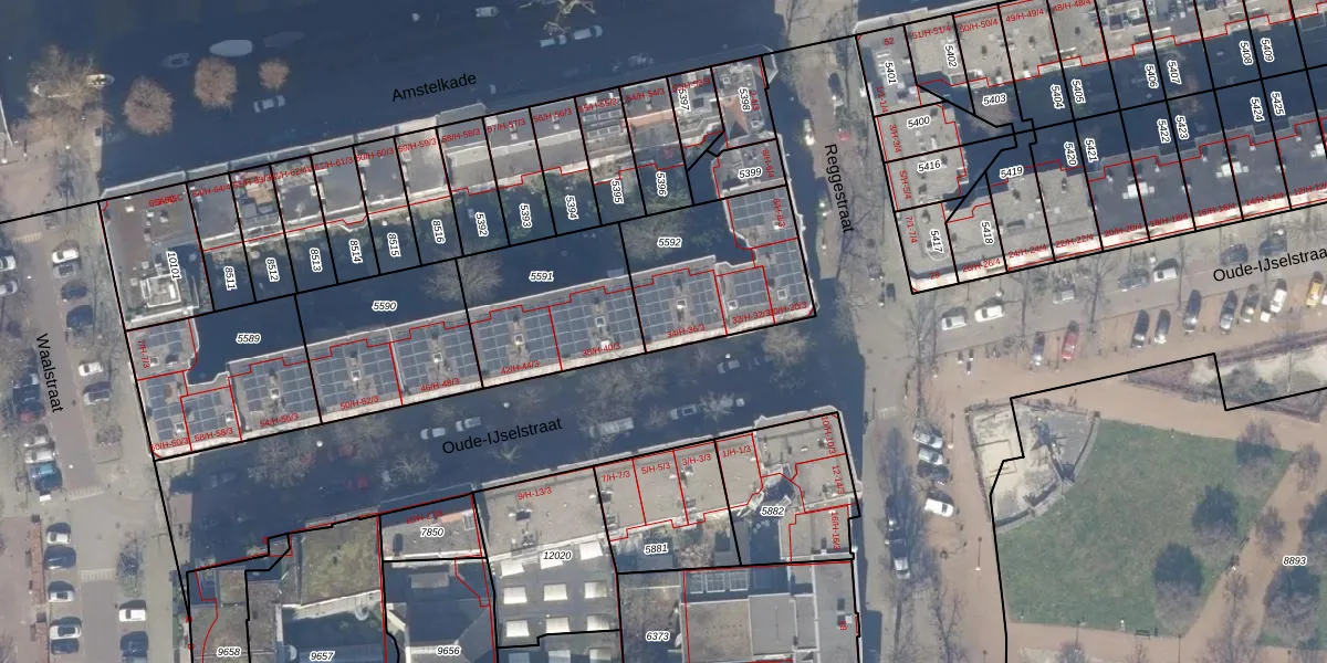 Het perceel waarop het adres ligt is ASD18-V-5592. De afkorting 'ASD18' staat voor kadastrale gemeente Amsterdam. Het perceel is 520 m² groot. Dat is kleiner dan de gemiddelde perceeloppervlakte in Amsterdam, dat op 558,8 m² ligt. Het kleinste perceel in de kadastrale gemeente is 0 m² groot. De grootste perceeloppervlakte is 12,5 ha. Op het perceel liggen in totaal 20 adressen. De huidige grenzen van het perceel zijn digitaal in de Basisregistratie Kadaster (BRK) geregistreerd op 26-09-2006.