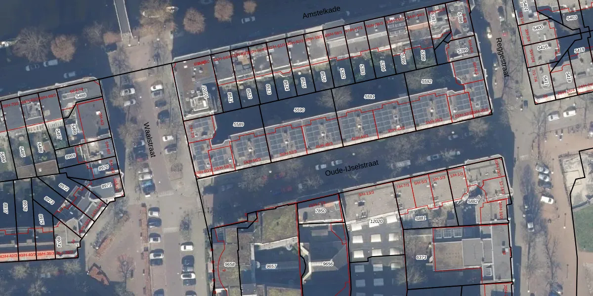 Het perceel waarop het adres ligt is ASD18-V-5590. De afkorting 'ASD18' staat voor kadastrale gemeente Amsterdam. Het perceel is 500 m² groot. Dat is kleiner dan de gemiddelde perceeloppervlakte in Amsterdam, dat op 558,8 m² ligt. Het kleinste perceel in de kadastrale gemeente is 0 m² groot. De grootste perceeloppervlakte is 12,5 ha. Op het perceel liggen in totaal 16 adressen. De laatste wijziging in het de Basisregistratie Kadaster (BRK) was op 26-09-2006.