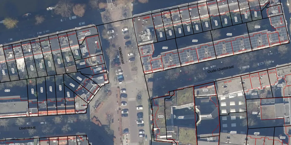 Het perceel waarop het adres ligt is ASD18-V-5589. De afkorting 'ASD18' staat voor kadastrale gemeente Amsterdam. Het perceel is 519 m² groot. Dat is kleiner dan de gemiddelde perceeloppervlakte in Amsterdam, dat op 558,8 m² ligt. Het kleinste perceel in de kadastrale gemeente is 0 m² groot. De grootste perceeloppervlakte is 12,5 ha. Er zijn 20 adressen aanwezig op het perceel. In de Basisregistratie Kadaster (BRK) werden de grenzen van het perceel geregistreerd op 26-09-2006.