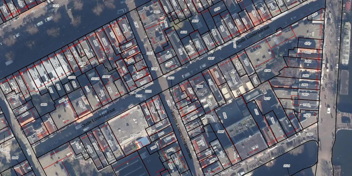 Oude Looiersstraat 55 is gelegen op kadastraal perceel ASD03E2416. Deze kadastrale aanduiding is uniek en wordt gebruikt door het Kadaster om eigendomsrechten en andere zakelijke rechten vast te leggen. Het perceel maakt onderdeel uit van de kadastrale gemeente Amsterdam.