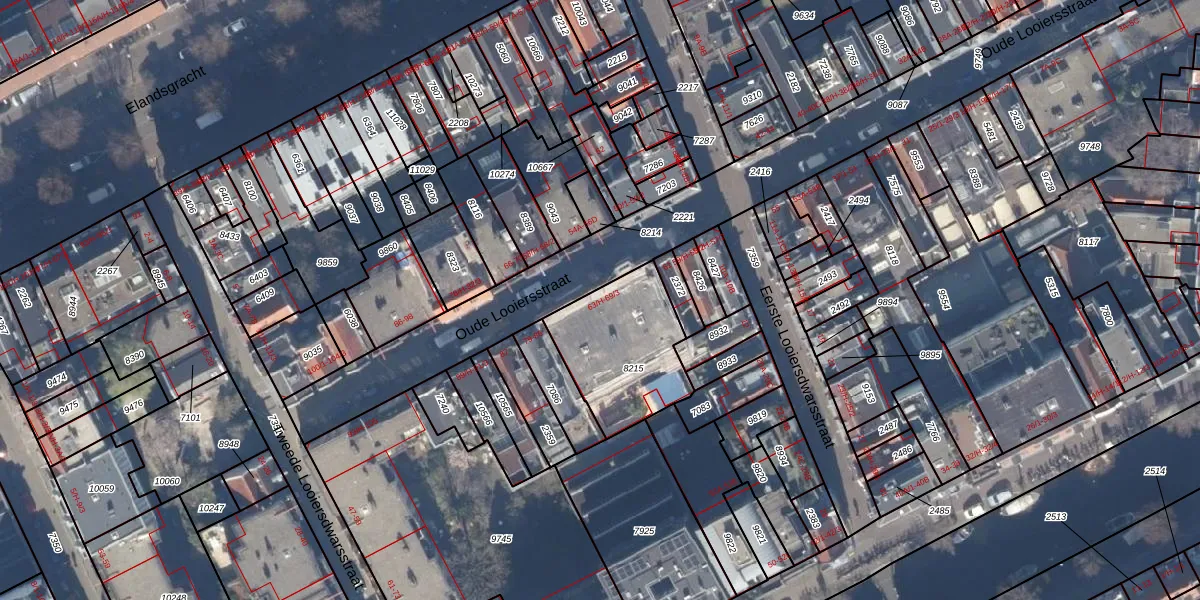 Oude Looiersstraat 67 is gelegen op kadastraal perceel ASD03E8215. Deze kadastrale aanduiding is uniek en wordt gebruikt door het Kadaster om eigendomsrechten en andere zakelijke rechten vast te leggen. Het perceel maakt onderdeel uit van de kadastrale gemeente Amsterdam.