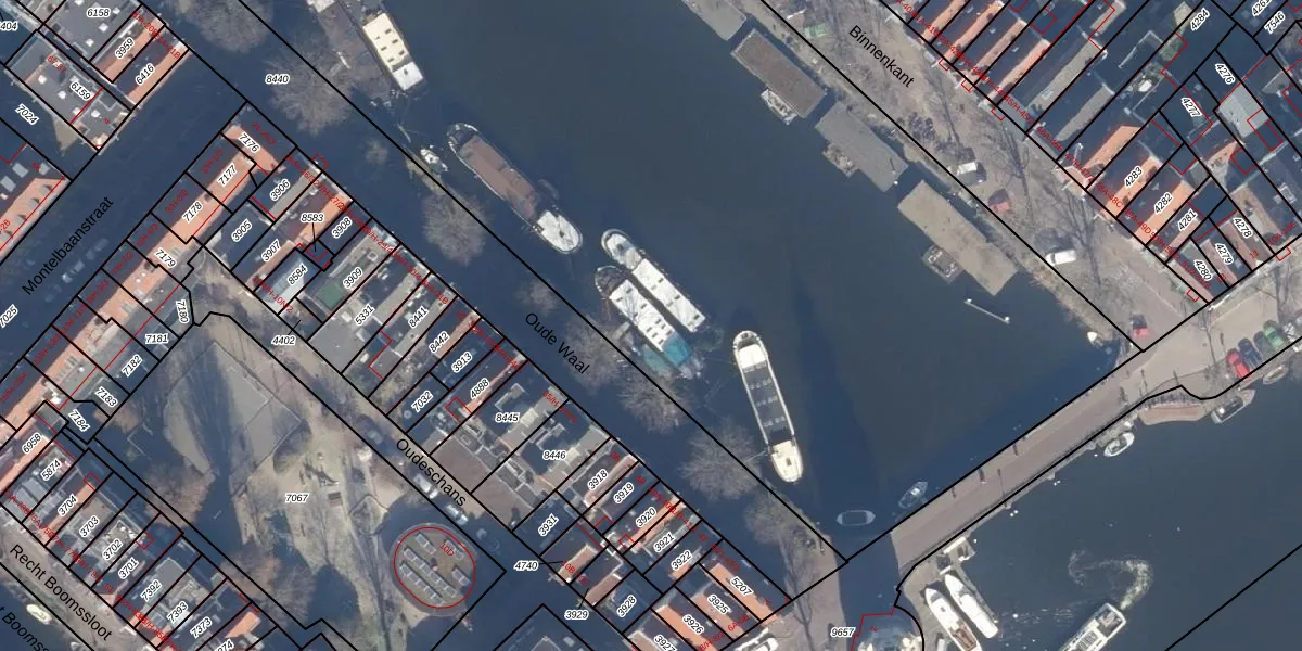 Het perceel waarop Oude Waal 38-F staat heeft een oppervlakte van 1,2 ha. Dit is een zeer groot perceel. De perceeloppervlakte wordt geregistreerd door het Kadaster. Gedetailleerde informatie over de maten van dit perceel kunt u vinden in het rapport Kadastrale kaart met maatvoering van Oude Waal 38-F.