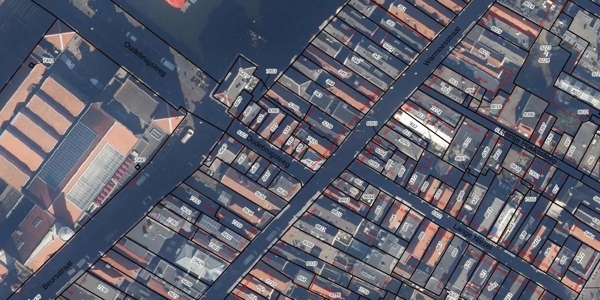 Het perceel waarop Oudebrugsteeg 2 staat heeft een oppervlakte van 20 m². Dit is een klein perceel. De perceeloppervlakte wordt geregistreerd door het Kadaster. Gedetailleerde informatie over de maten van dit perceel kunt u vinden in het rapport Kadastrale kaart met maatvoering van Oudebrugsteeg 2.