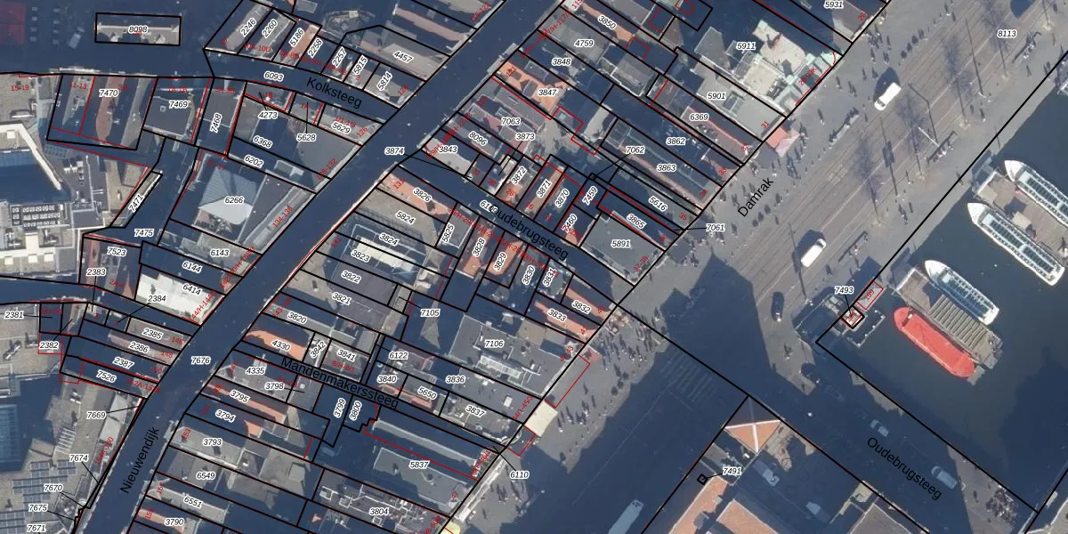 Het perceel waarop Oudebrugsteeg 23-1 staat heeft een oppervlakte van 67 m². Dit is een klein perceel. De perceeloppervlakte wordt geregistreerd door het Kadaster. Gedetailleerde informatie over de maten van dit perceel kunt u vinden in het rapport Kadastrale kaart met maatvoering van Oudebrugsteeg 23-1.