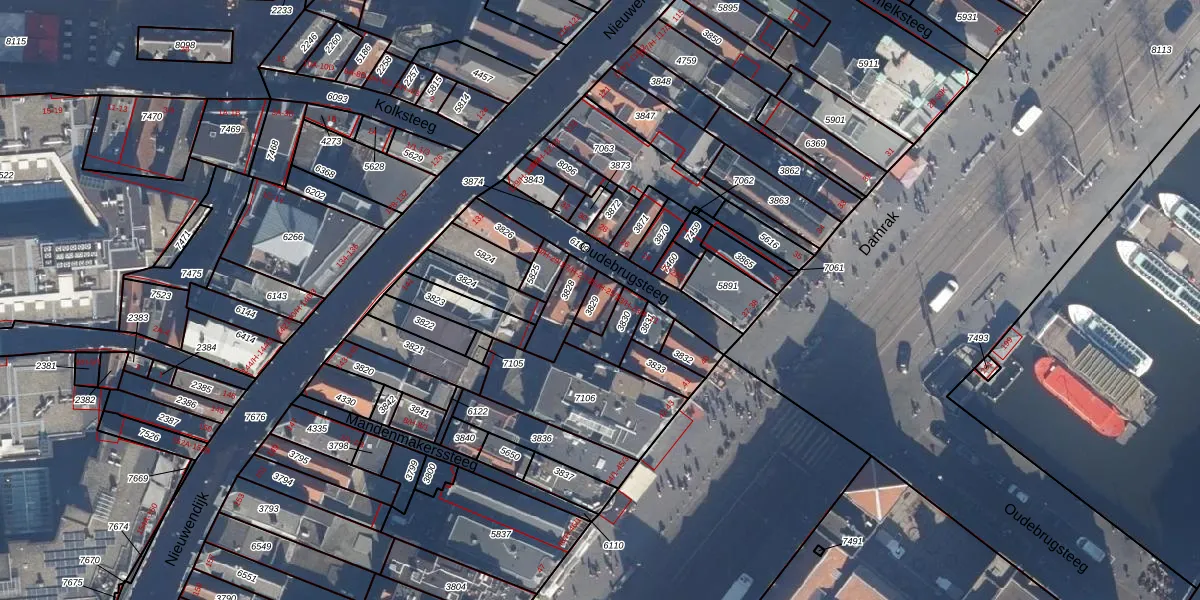 Het perceel waarop Oudebrugsteeg 25-H staat heeft een oppervlakte van 42 m². Dit is een klein perceel. De perceeloppervlakte wordt geregistreerd door het Kadaster. Gedetailleerde informatie over de maten van dit perceel kunt u vinden in het rapport Kadastrale kaart met maatvoering van Oudebrugsteeg 25-H.