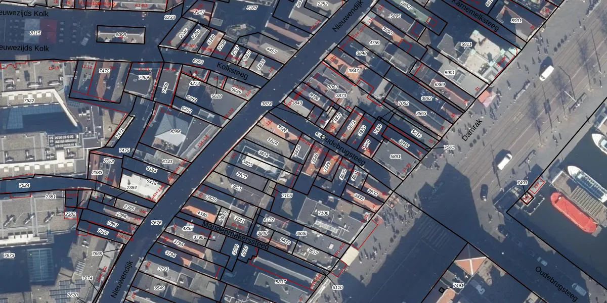 Het perceel waarop Oudebrugsteeg 29-H staat heeft een oppervlakte van 47 m². Dit is een klein perceel. De perceeloppervlakte wordt geregistreerd door het Kadaster. Gedetailleerde informatie over de maten van dit perceel kunt u vinden in het rapport Kadastrale kaart met maatvoering van Oudebrugsteeg 29-H.