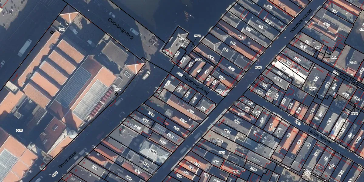 Het perceel waarop Oudebrugsteeg 5-1 staat heeft een oppervlakte van 46 m². Dit is een klein perceel. De perceeloppervlakte wordt geregistreerd door het Kadaster. Gedetailleerde informatie over de maten van dit perceel kunt u vinden in het rapport Kadastrale kaart met maatvoering van Oudebrugsteeg 5-1.