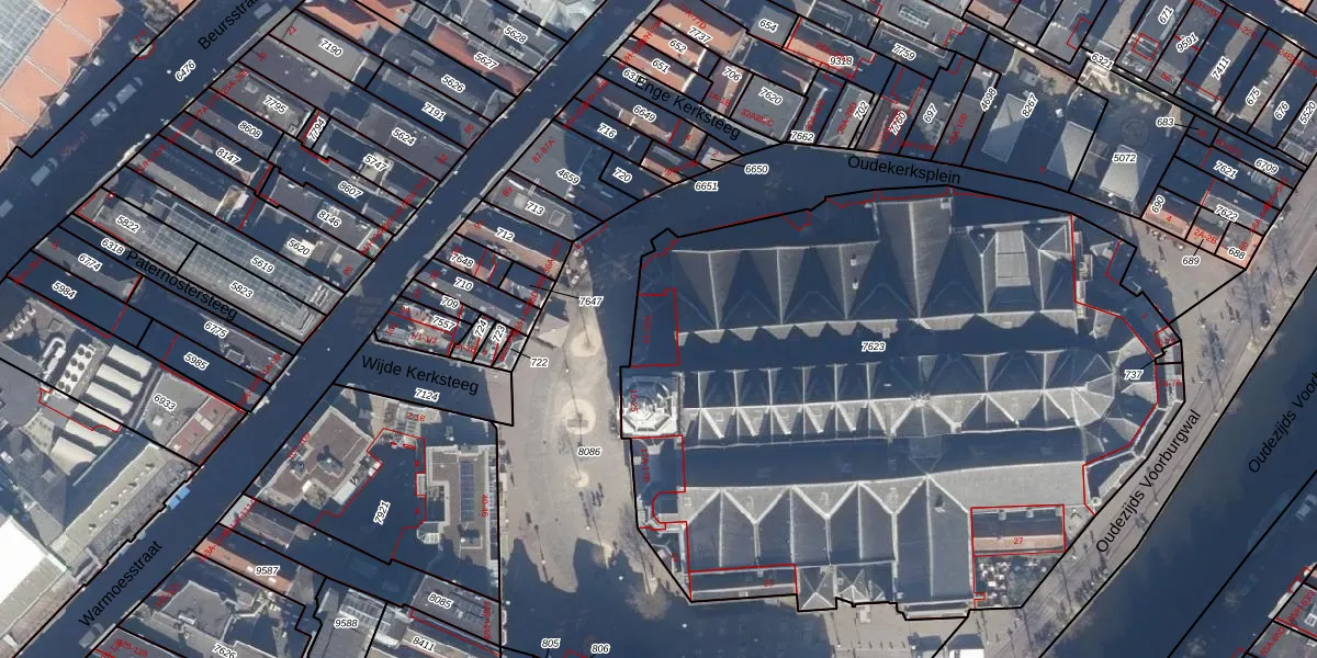 Het perceel waarop Oudekerksplein 13-H staat heeft een oppervlakte van 4382 m². Dit is een zeer groot perceel. De perceeloppervlakte wordt geregistreerd door het Kadaster. Gedetailleerde informatie over de maten van dit perceel kunt u vinden in het rapport Kadastrale kaart met maatvoering van Oudekerksplein 13-H.