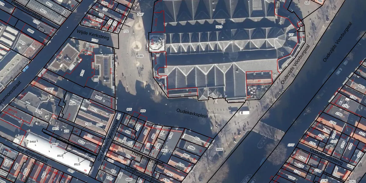 Het perceel waarop Oudekerksplein 23 staat heeft een oppervlakte van 4382 m². Dit is een zeer groot perceel. De perceeloppervlakte wordt geregistreerd door het Kadaster. Gedetailleerde informatie over de maten van dit perceel kunt u vinden in het rapport Kadastrale kaart met maatvoering van Oudekerksplein 23.