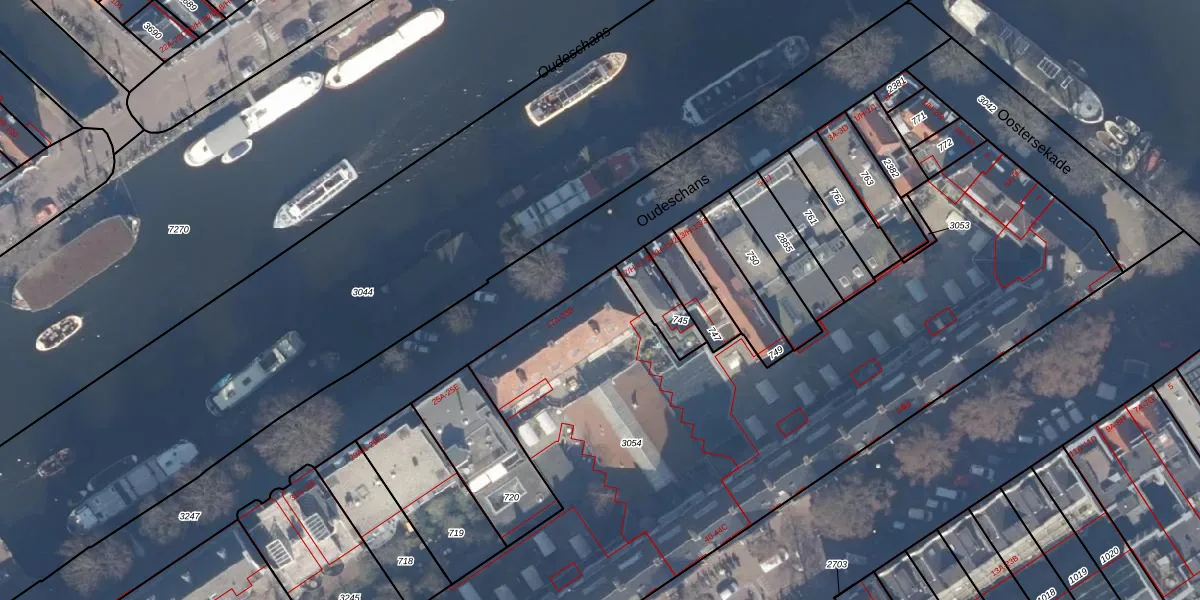 Het perceel waarop Oudeschans 19-1 staat heeft een oppervlakte van 3867 m². Dit is een zeer groot perceel. De perceeloppervlakte wordt geregistreerd door het Kadaster. Gedetailleerde informatie over de maten van dit perceel kunt u vinden in het rapport Kadastrale kaart met maatvoering van Oudeschans 19-1.