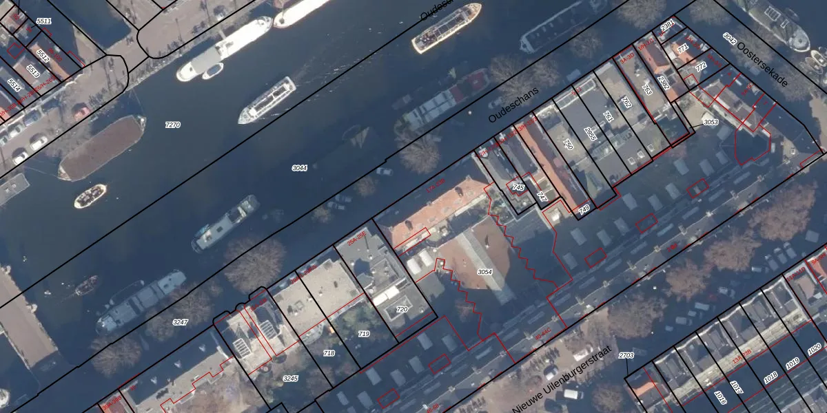 Het perceel waarop Oudeschans 23-1 staat heeft een oppervlakte van 3867 m². Dit is een zeer groot perceel. De perceeloppervlakte wordt geregistreerd door het Kadaster. Gedetailleerde informatie over de maten van dit perceel kunt u vinden in het rapport Kadastrale kaart met maatvoering van Oudeschans 23-1.