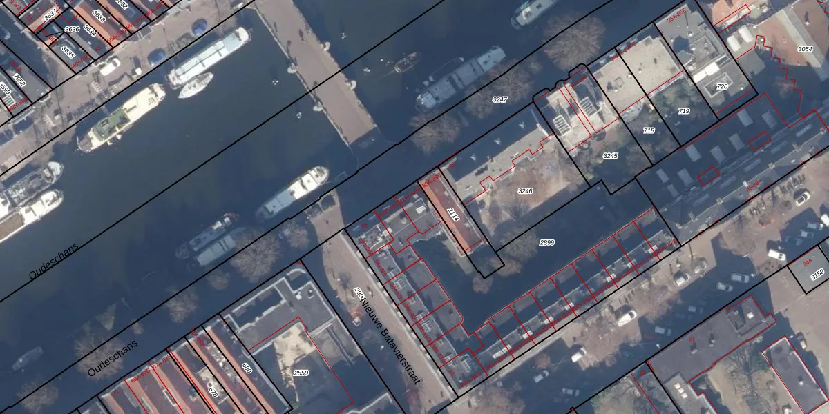 Het perceel waarop Oudeschans 41-3 staat heeft een oppervlakte van 2037 m². Dit is een zeer groot perceel. De perceeloppervlakte wordt geregistreerd door het Kadaster. Gedetailleerde informatie over de maten van dit perceel kunt u vinden in het rapport Kadastrale kaart met maatvoering van Oudeschans 41-3.