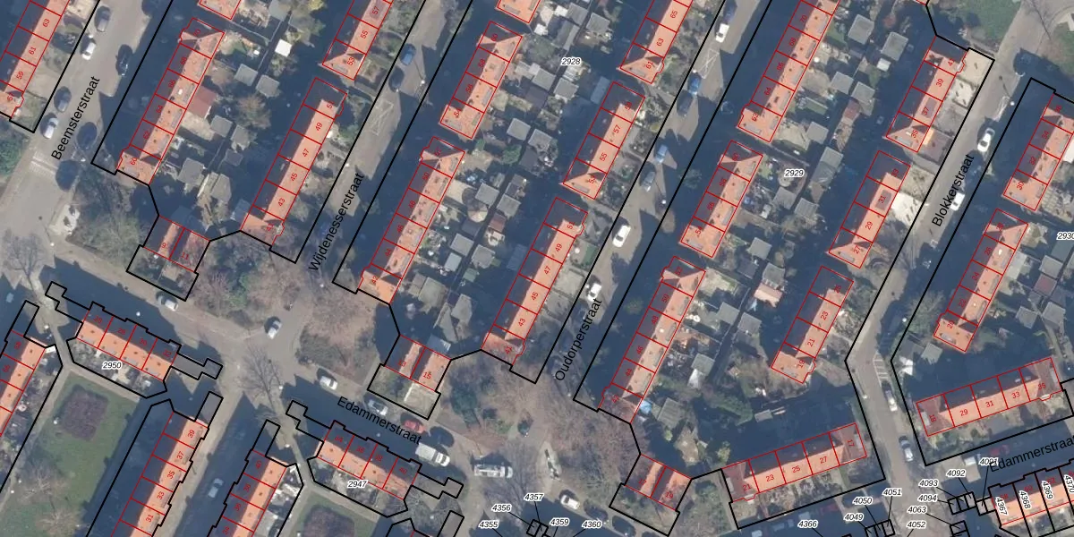 Het perceel waarop Oudorperstraat 47 staat heeft een oppervlakte van 4193 m². Dit is een zeer groot perceel. De perceeloppervlakte wordt geregistreerd door het Kadaster. Gedetailleerde informatie over de maten van dit perceel kunt u vinden in het rapport Kadastrale kaart met maatvoering van Oudorperstraat 47.
