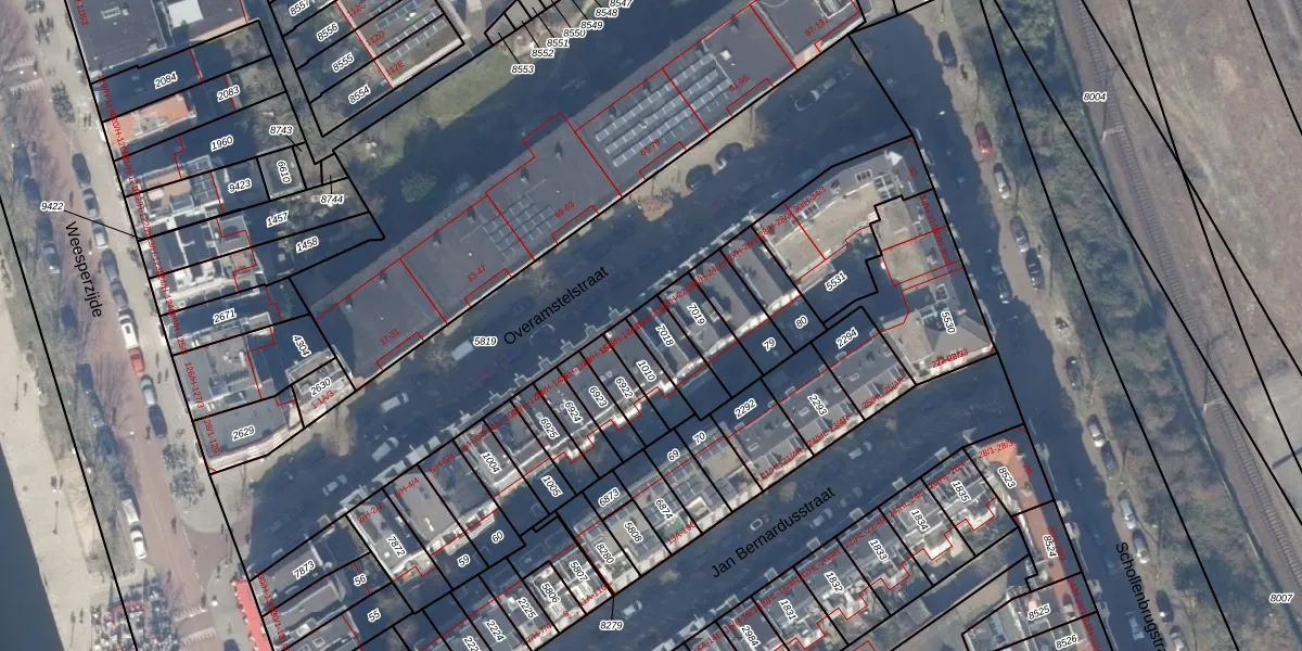 Overamstelstraat 20-2 is gelegen op kadastraal perceel ASD19W7018. Deze kadastrale aanduiding is uniek en wordt gebruikt door het Kadaster om eigendomsrechten en andere zakelijke rechten vast te leggen. Het perceel maakt onderdeel uit van de kadastrale gemeente Amsterdam.