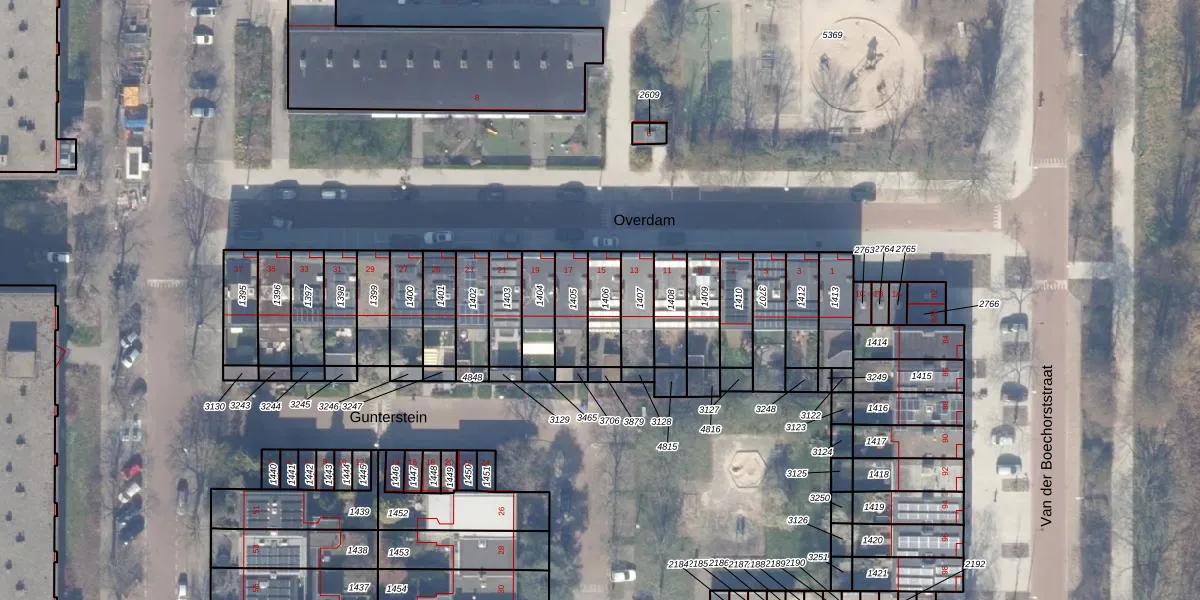 Het perceel waarop Overdam 15 staat heeft een oppervlakte van 106 m². Dit is een middelgroot perceel. De perceeloppervlakte wordt geregistreerd door het Kadaster. Gedetailleerde informatie over de maten van dit perceel kunt u vinden in het rapport Kadastrale kaart met maatvoering van Overdam 15.