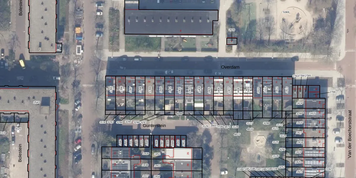 Het perceel waarop Overdam 23 staat heeft een oppervlakte van 106 m². Dit is een middelgroot perceel. De perceeloppervlakte wordt geregistreerd door het Kadaster. Gedetailleerde informatie over de maten van dit perceel kunt u vinden in het rapport Kadastrale kaart met maatvoering van Overdam 23.