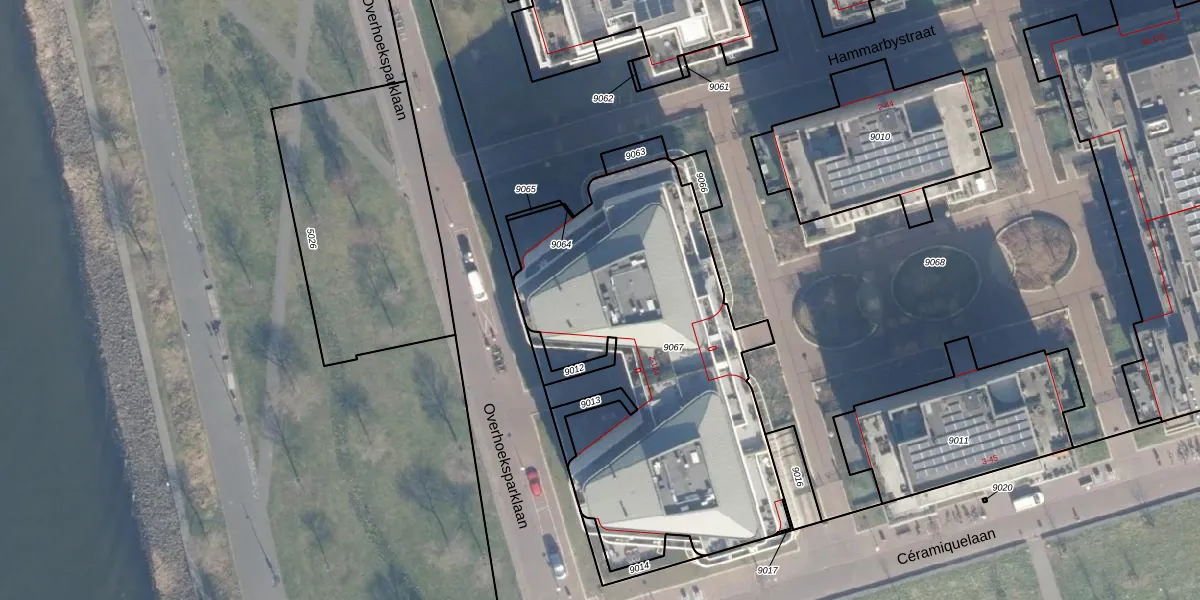 Overhoeksparklaan 100 is gelegen op kadastraal perceel ASD07K9067. Deze kadastrale aanduiding is uniek en wordt gebruikt door het Kadaster om eigendomsrechten en andere zakelijke rechten vast te leggen. Het perceel maakt onderdeel uit van de kadastrale gemeente Amsterdam.