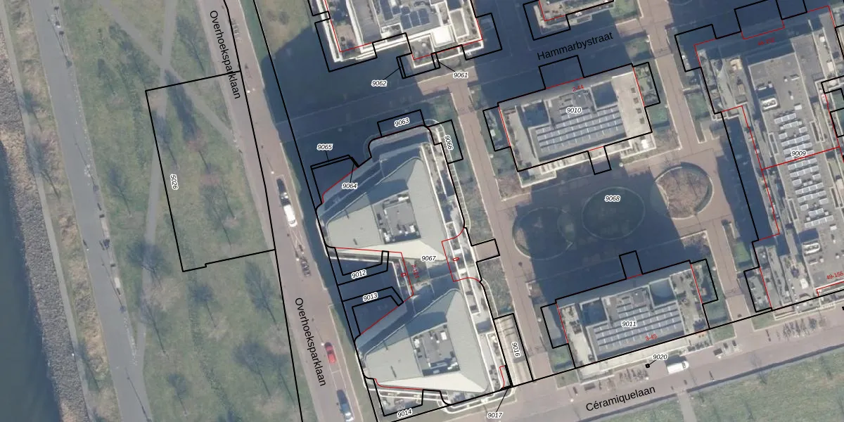 Overhoeksparklaan 112 is gelegen op kadastraal perceel ASD07K9067. Deze kadastrale aanduiding is uniek en wordt gebruikt door het Kadaster om eigendomsrechten en andere zakelijke rechten vast te leggen. Het perceel maakt onderdeel uit van de kadastrale gemeente Amsterdam.