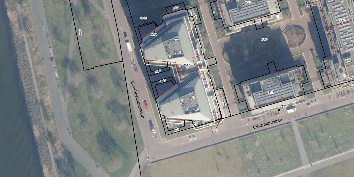 Overhoeksparklaan 14 is gelegen op kadastraal perceel ASD07K9067. Deze kadastrale aanduiding is uniek en wordt gebruikt door het Kadaster om eigendomsrechten en andere zakelijke rechten vast te leggen. Het perceel maakt onderdeel uit van de kadastrale gemeente Amsterdam.