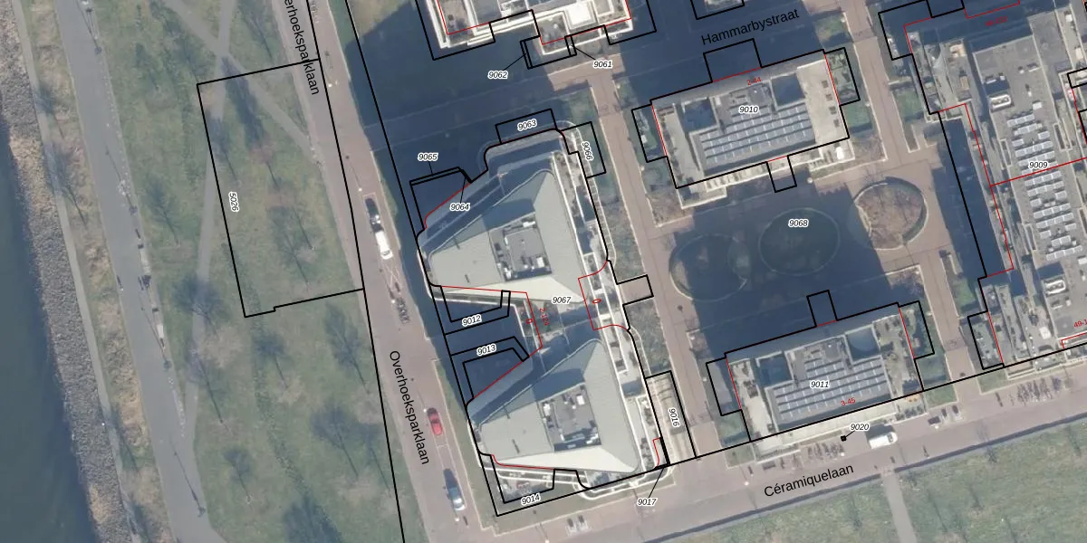 Het perceel waarop Overhoeksparklaan 72 staat heeft een oppervlakte van 1964 m². Dit is een zeer groot perceel. De perceeloppervlakte wordt geregistreerd door het Kadaster. Gedetailleerde informatie over de maten van dit perceel kunt u vinden in het rapport Kadastrale kaart met maatvoering van Overhoeksparklaan 72.