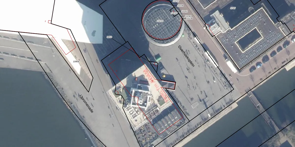 Het perceel waarop Overhoeksplein 21-D staat heeft een oppervlakte van 2150 m². Dit is een zeer groot perceel. De perceeloppervlakte wordt geregistreerd door het Kadaster. Gedetailleerde informatie over de maten van dit perceel kunt u vinden in het rapport Kadastrale kaart met maatvoering van Overhoeksplein 21-D.