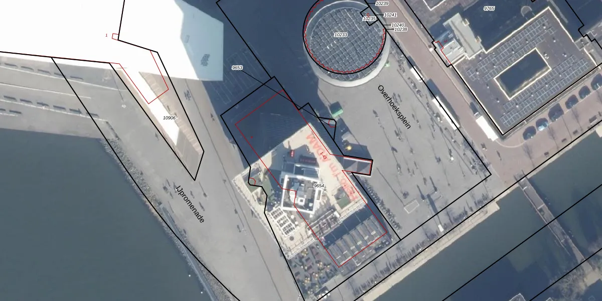 Het perceel waarop Overhoeksplein 23-N staat heeft een oppervlakte van 2150 m². Dit is een zeer groot perceel. De perceeloppervlakte wordt geregistreerd door het Kadaster. Gedetailleerde informatie over de maten van dit perceel kunt u vinden in het rapport Kadastrale kaart met maatvoering van Overhoeksplein 23-N.