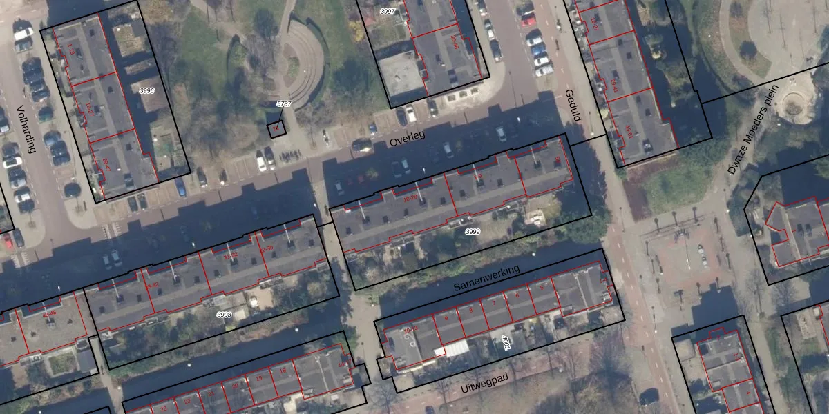 Het perceel waarop Overleg 12 staat heeft een oppervlakte van 1247 m². Dit is een zeer groot perceel. De perceeloppervlakte wordt geregistreerd door het Kadaster. Gedetailleerde informatie over de maten van dit perceel kunt u vinden in het rapport Kadastrale kaart met maatvoering van Overleg 12.