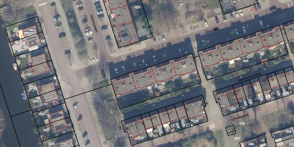 Het perceel waarop Overleg 120 staat heeft een oppervlakte van 1227 m². Dit is een zeer groot perceel. De perceeloppervlakte wordt geregistreerd door het Kadaster. Gedetailleerde informatie over de maten van dit perceel kunt u vinden in het rapport Kadastrale kaart met maatvoering van Overleg 120.