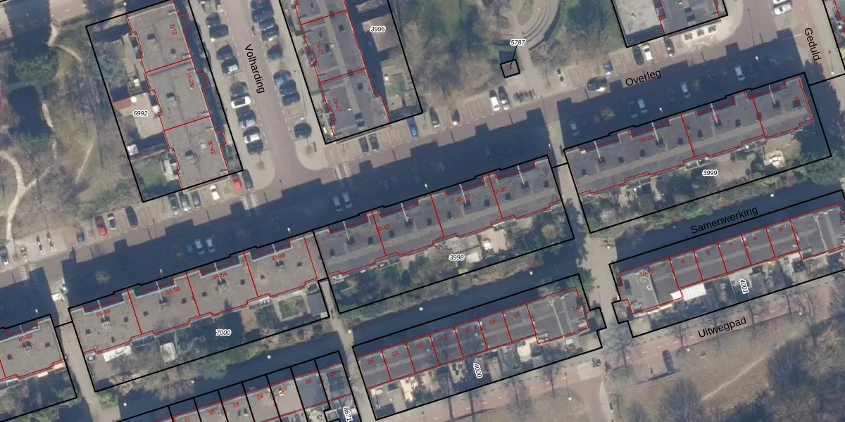 Het perceel waarop Overleg 33 staat heeft een oppervlakte van 1211 m². Dit is een zeer groot perceel. De perceeloppervlakte wordt geregistreerd door het Kadaster. Gedetailleerde informatie over de maten van dit perceel kunt u vinden in het rapport Kadastrale kaart met maatvoering van Overleg 33.