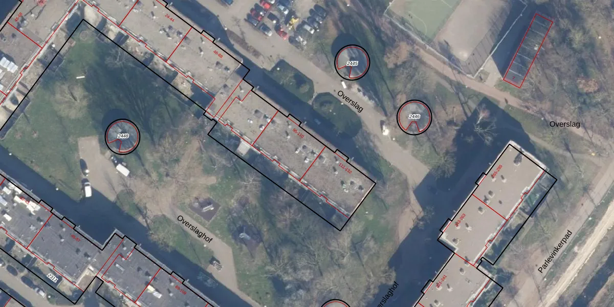 Het perceel waarop Overslag 108 staat heeft een oppervlakte van 8260 m². Dit is een zeer groot perceel. De perceeloppervlakte wordt geregistreerd door het Kadaster. Gedetailleerde informatie over de maten van dit perceel kunt u vinden in het rapport Kadastrale kaart met maatvoering van Overslag 108.