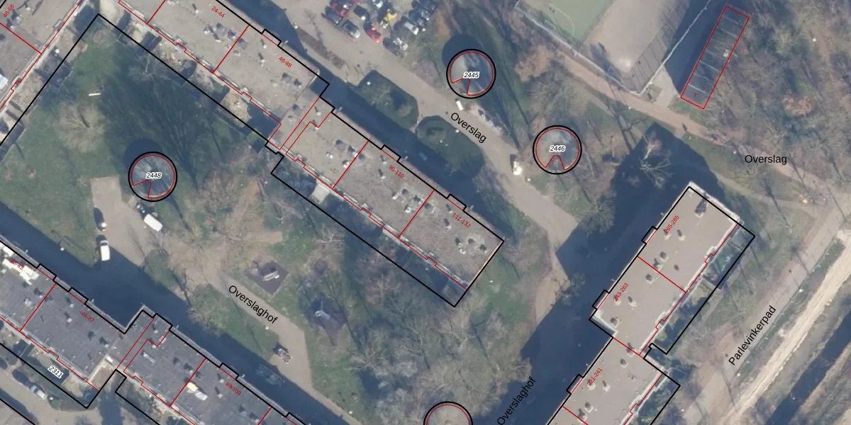 Het perceel waarop Overslag 114 staat heeft een oppervlakte van 8260 m². Dit is een zeer groot perceel. De perceeloppervlakte wordt geregistreerd door het Kadaster. Gedetailleerde informatie over de maten van dit perceel kunt u vinden in het rapport Kadastrale kaart met maatvoering van Overslag 114.