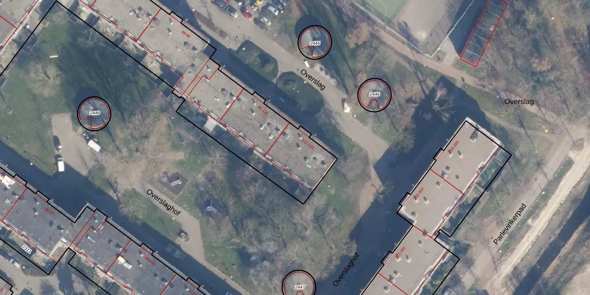 Het perceel waarop Overslag 120 staat heeft een oppervlakte van 8260 m². Dit is een zeer groot perceel. De perceeloppervlakte wordt geregistreerd door het Kadaster. Gedetailleerde informatie over de maten van dit perceel kunt u vinden in het rapport Kadastrale kaart met maatvoering van Overslag 120.