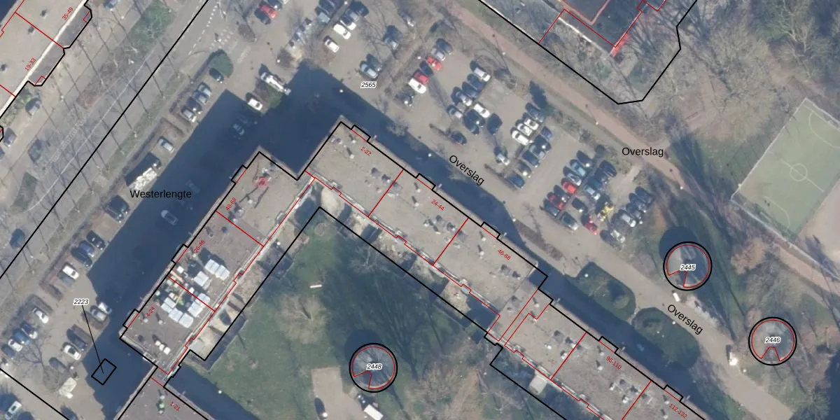 Overslag 40 is gelegen op kadastraal perceel ASD36AQ2311. Deze kadastrale aanduiding is uniek en wordt gebruikt door het Kadaster om eigendomsrechten en andere zakelijke rechten vast te leggen. Het perceel maakt onderdeel uit van de kadastrale gemeente Amsterdam.