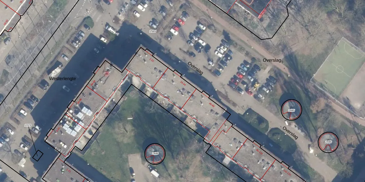 Overslag 42 is gelegen op kadastraal perceel ASD36AQ2311. Deze kadastrale aanduiding is uniek en wordt gebruikt door het Kadaster om eigendomsrechten en andere zakelijke rechten vast te leggen. Het perceel maakt onderdeel uit van de kadastrale gemeente Amsterdam.