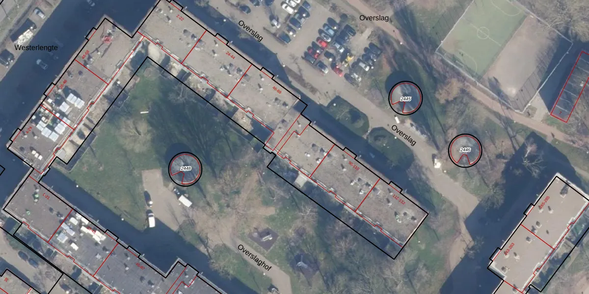 Overslag 68 is gelegen op kadastraal perceel ASD36AQ2311. Deze kadastrale aanduiding is uniek en wordt gebruikt door het Kadaster om eigendomsrechten en andere zakelijke rechten vast te leggen. Het perceel maakt onderdeel uit van de kadastrale gemeente Amsterdam.