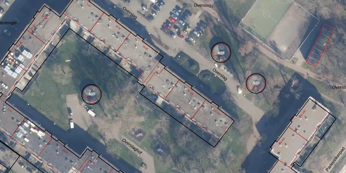 Overslag 86 is gelegen op kadastraal perceel ASD36AQ2311. Deze kadastrale aanduiding is uniek en wordt gebruikt door het Kadaster om eigendomsrechten en andere zakelijke rechten vast te leggen. Het perceel maakt onderdeel uit van de kadastrale gemeente Amsterdam.
