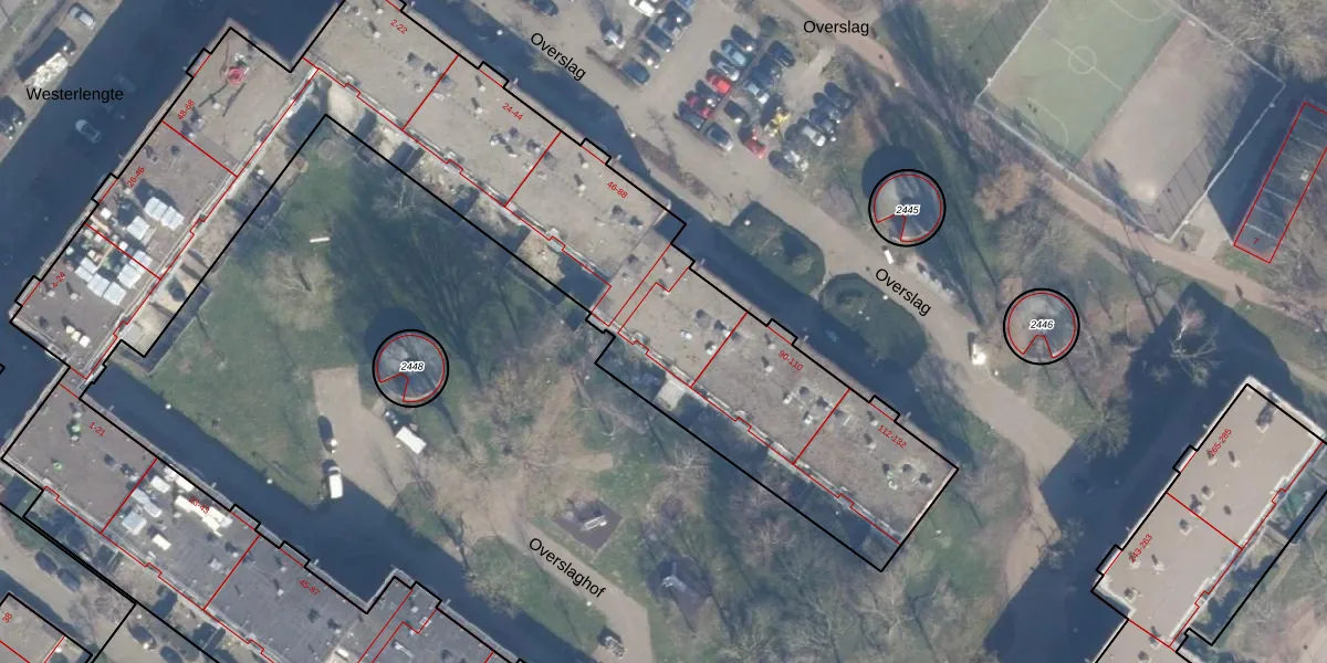 Het perceel waarop Overslag 88 staat heeft een oppervlakte van 8260 m². Dit is een zeer groot perceel. De perceeloppervlakte wordt geregistreerd door het Kadaster. Gedetailleerde informatie over de maten van dit perceel kunt u vinden in het rapport Kadastrale kaart met maatvoering van Overslag 88.