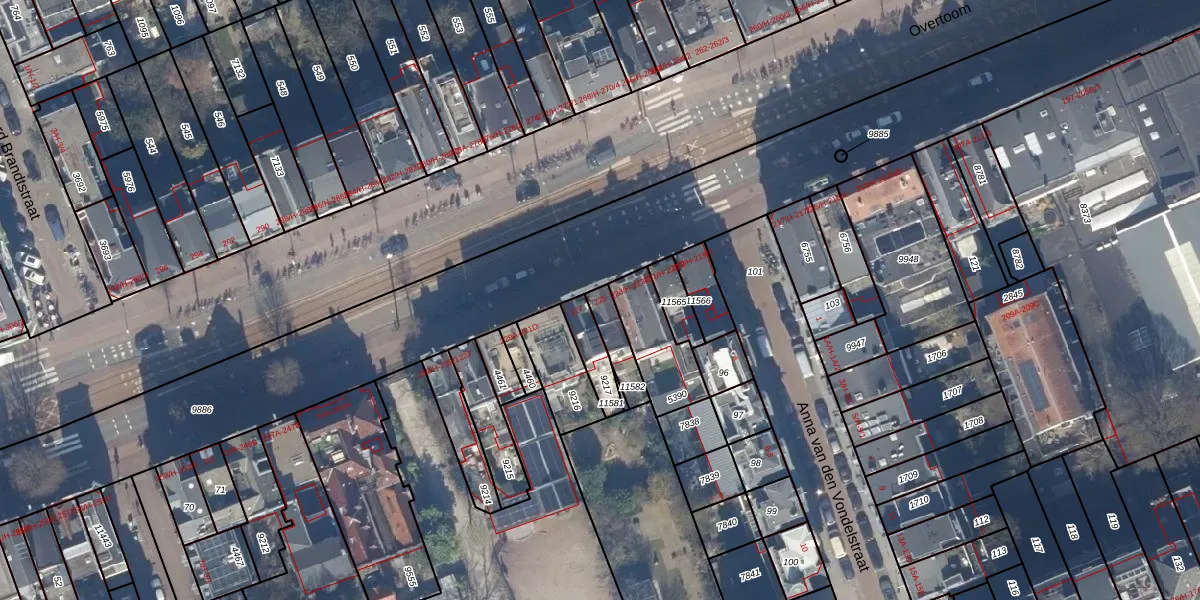 Het perceel waarop Overtoom 225-B staat heeft een oppervlakte van 78 m². Dit is een klein perceel. De perceeloppervlakte wordt geregistreerd door het Kadaster. Gedetailleerde informatie over de maten van dit perceel kunt u vinden in het rapport Kadastrale kaart met maatvoering van Overtoom 225-B.