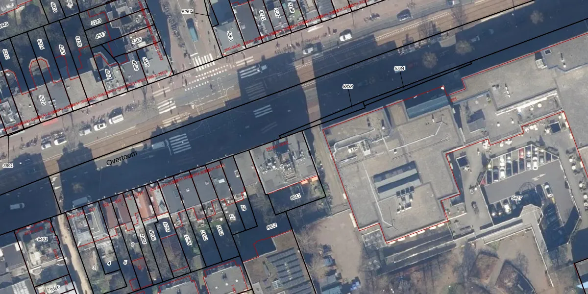 Het perceel waarop Overtoom 295-G staat heeft een oppervlakte van 447 m². Dit is een groot perceel. De perceeloppervlakte wordt geregistreerd door het Kadaster. Gedetailleerde informatie over de maten van dit perceel kunt u vinden in het rapport Kadastrale kaart met maatvoering van Overtoom 295-G.