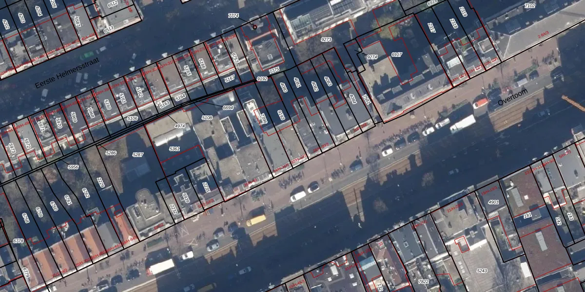 Het adres is gelegen op perceel 9193 in de sectie Q en de kadastrale gemeente Amsterdam. De kadastrale aanduiding is aldus ASD13-Q-9193. Het perceel is 201 m² groot. Dat is kleiner dan de gemiddelde perceeloppervlakte in Amsterdam, dat op 393,94 m² ligt. De grootste perceeloppervlakte in de kadastrale gemeente is 6,2 ha. De kleinste oppervlakte bedraagt 1 m². Op het perceel liggen in totaal 5 adressen. De huidige grenzen van het perceel zijn digitaal in de Basisregistratie Kadaster (BRK) geregistreerd op 11-12-2018.