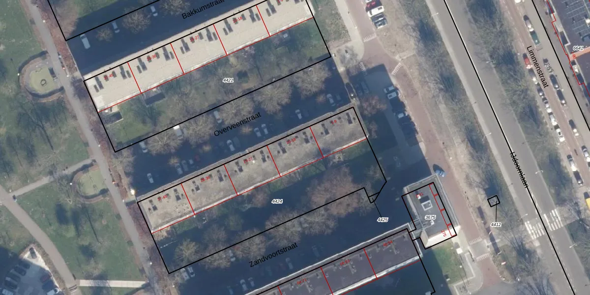 Het perceel waarop het adres ligt is ASD31-AL-4424. De afkorting 'ASD31' staat voor kadastrale gemeente Amsterdam. Het perceel is met 2139 m² relatief groot. Het gemiddelde ligt in de kadastrale gemeente Amsterdam op 1159,38 m². De grootste perceeloppervlakte in de kadastrale gemeente is 35,6 ha. De kleinste oppervlakte bedraagt 0 m². Op het perceel zijn 45 adressen aanwezig. In de Basisregistratie Kadaster (BRK) werden de grenzen van het perceel geregistreerd op 02-12-2010.